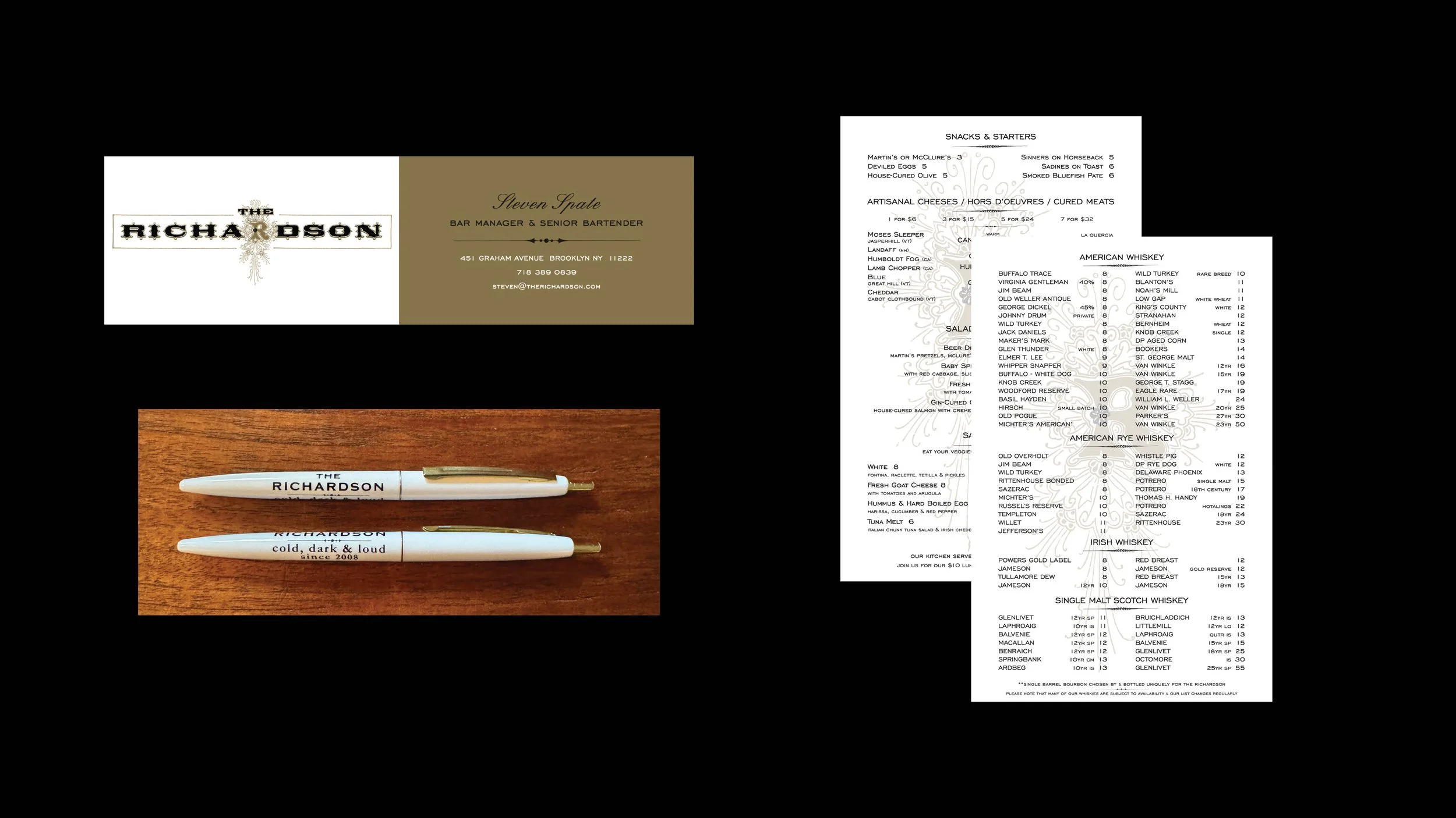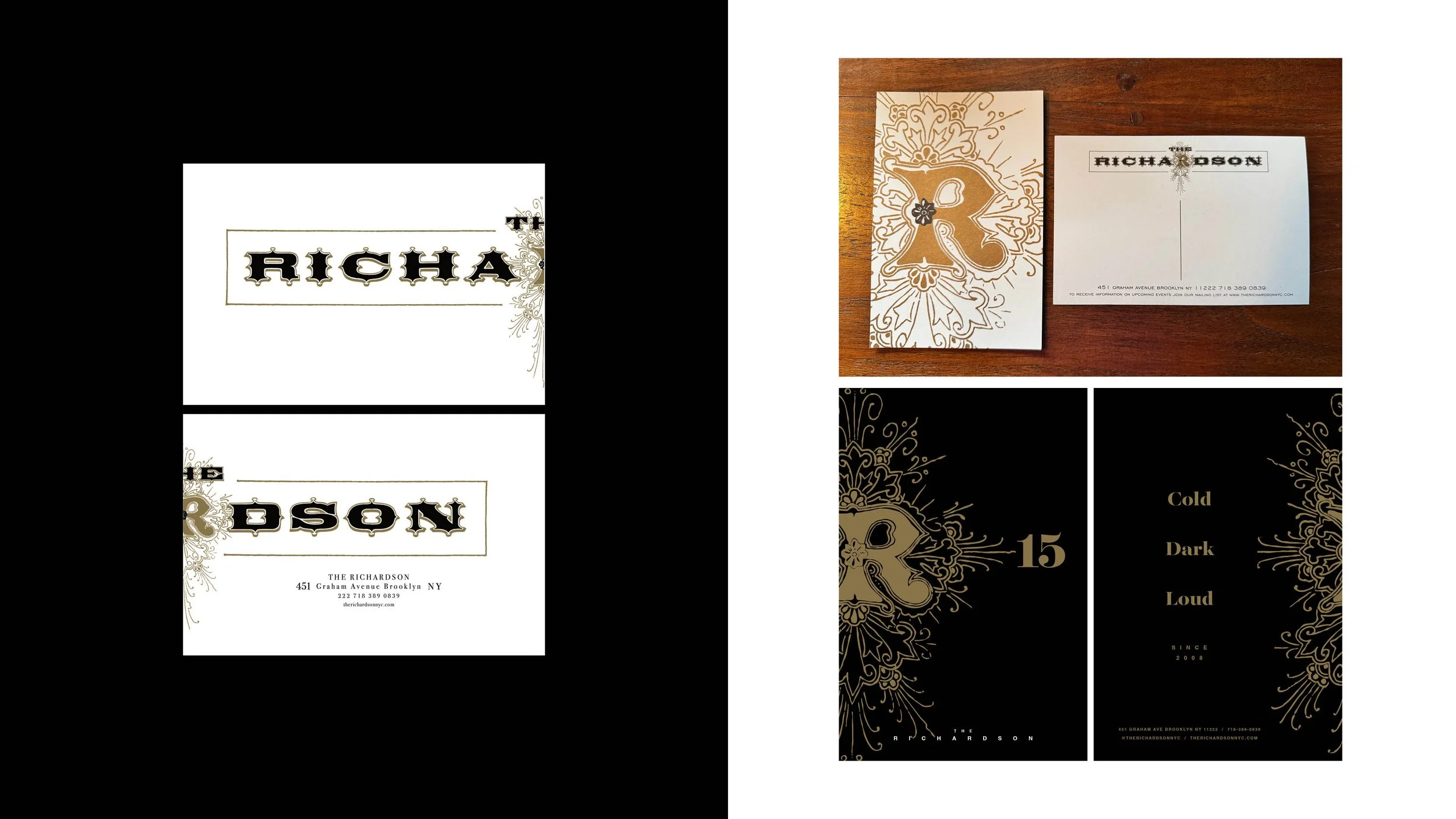 My friend and proprietor Joel Lee Kulp approached me with an exciting proposition. He was going to open a community focused establishment in Brooklyn, NY. He wanted me to help him bring his brand and bar to life with classic and impactful branding that paid homage to NYC Baroque and Victorian design while maintaining a subtle Punk Rock edge. All of this to honor The Richardson building, the Greenpoint neighborhood and community his new bar was to serve.